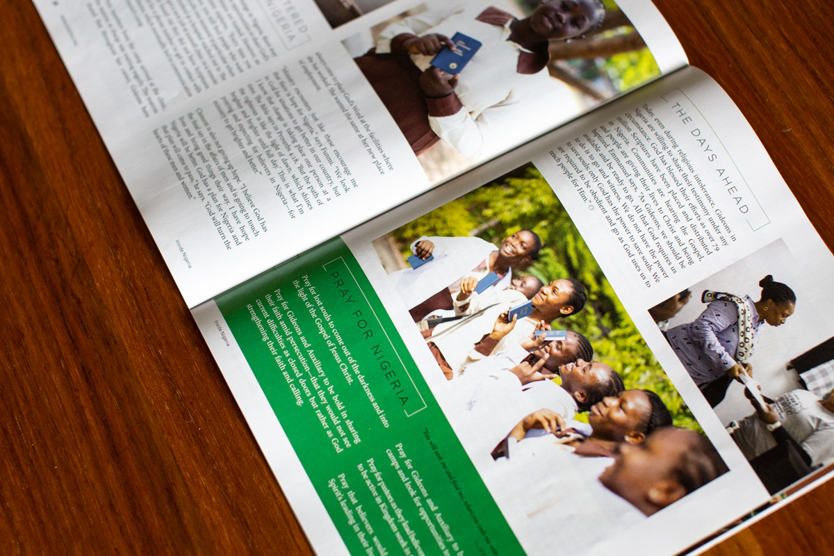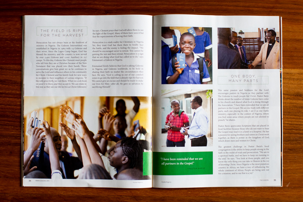 These editorial projects are a variety of print, digital and video pieces that help to highlight events and stories connected to The Gideons International. These showcase skills in design, photography, production, editing, and art direction.